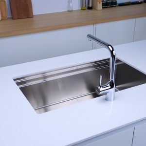 Thiết kế một hố lớn theo phong cách tối giản với đường nét mềm mại, thanh lịch, dễ dàng hòa hợp với mọi kiểu dáng bếp.Chậu có thể lắp đặt theo kiểu âm hoặc bán âm, đi kèm nhiều phụ kiện bếp tiện lợi, giúp công việc bếp núc trở nên nhẹ nhàng hơn.