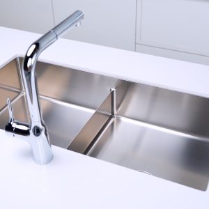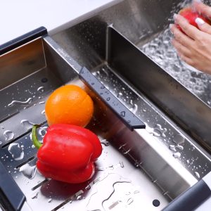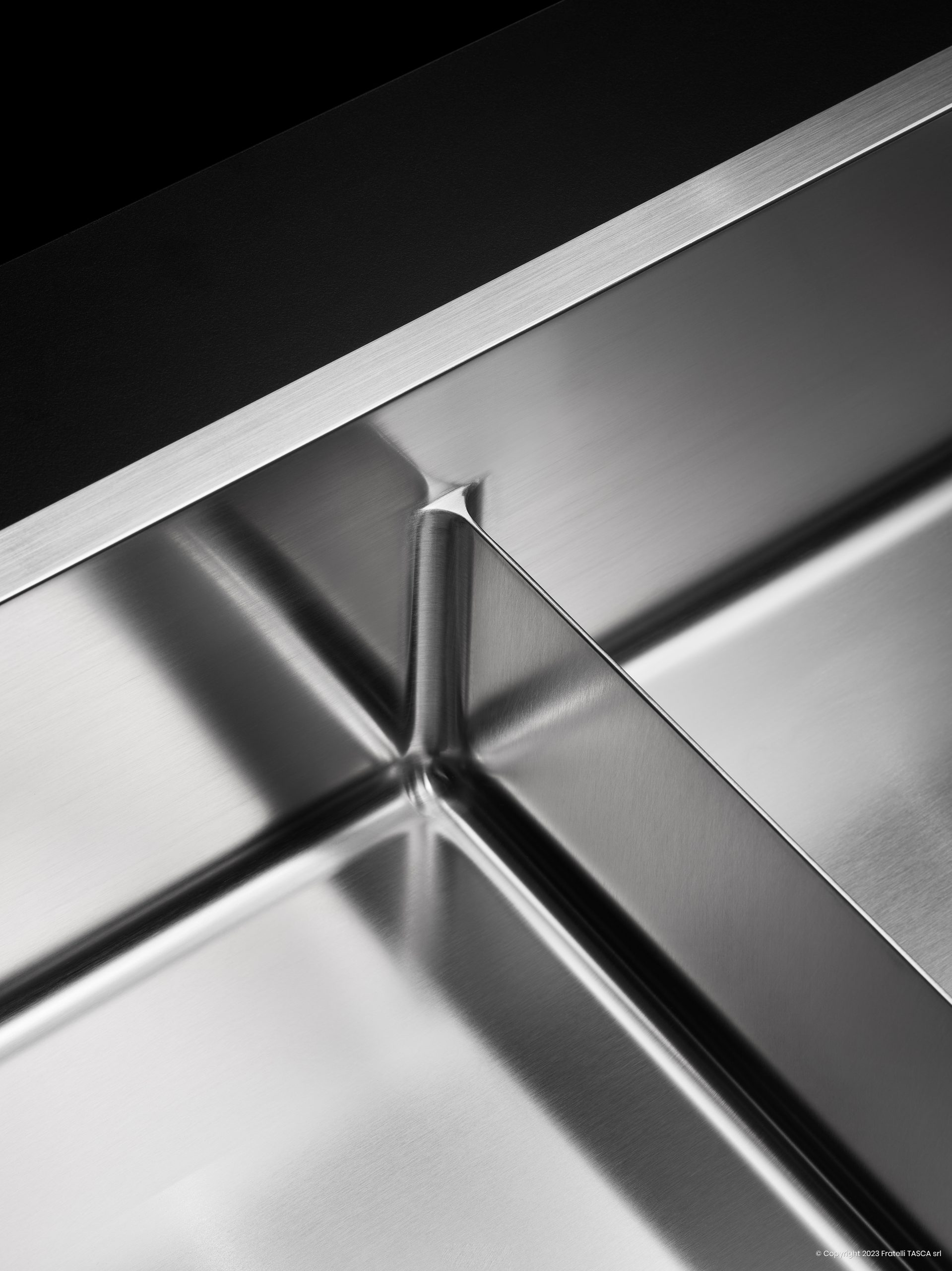 Chậu rửa bát này có thể lắp đặt theo kiểu âm hoặc bán âm, đi kèm với nhiều phụ kiện bếp tiện ích, giúp công việc bếp núc trở nên nhẹ nhàng và đơn giản hơn. Lỗ thoát tràn được thiết kế liền mạch với bề mặt chậu, tăng tính thẩm mỹ và dễ dàng vệ sinh. Các góc lượn bo tròn cũng giúp việc lau chùi trở nên thuận tiện hơn.
