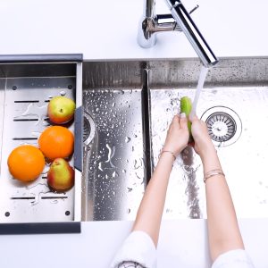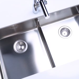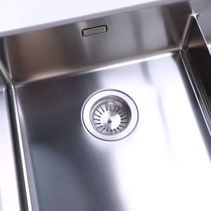 Chất liệu inox 304 không chứa chì, chống oxy hóa, an toàn cho sức khỏe người dùng và luôn giữ được độ sáng bóng, bền màu. Chậu có thể lắp đặt linh hoạt theo kiểu âm, dương hoặc bán âm tùy theo thiết kế mặt đá bếp. Hố rác cấu tạo 2 lớp giúp người dùng hạn chế trường hợp rác thải gây tắc nghẽn đường thoát nước.