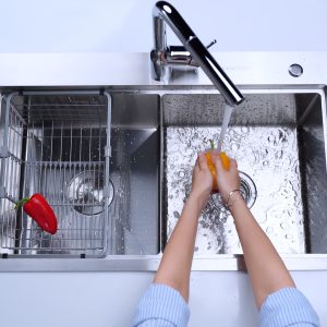 Bát rác của chậu có kích thước lớn 140mm, giúp thoát nước nhanh chóng và hiệu quả. Cấu tạo 3 lớp lọc rác đặc biệt giúp chống tắc nghẽn, rất phù hợp với thói quen đổ thực phẩm thừa vào chậu của người Việt.