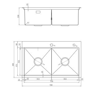 Thông số kỹ thuật chậu rửa 2 hộc LUMIA NJ522