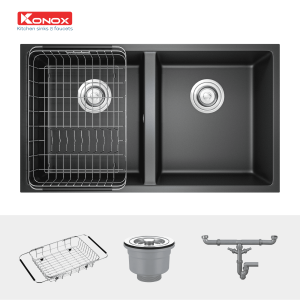 Mô tả chi tiết chậu rửa chén KONOX VELOCI 760D Black 2 hộc màu đen