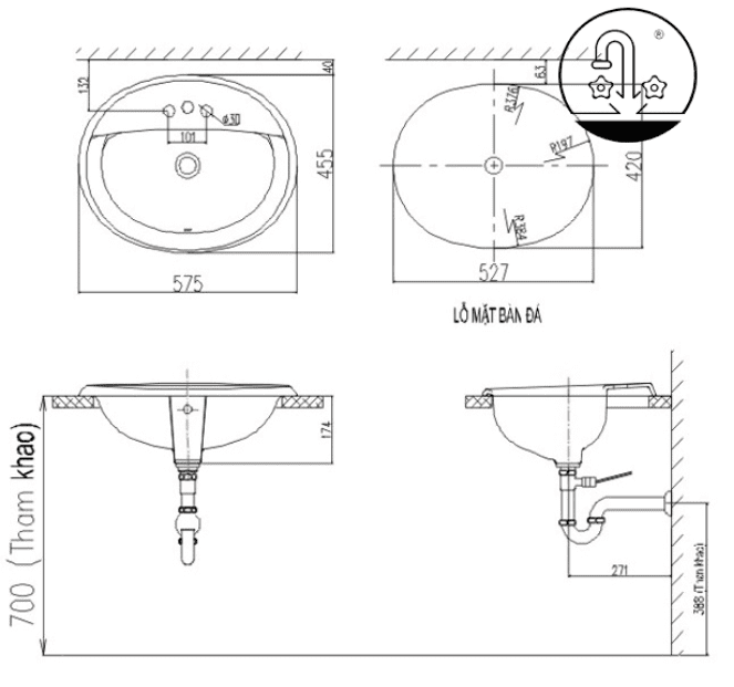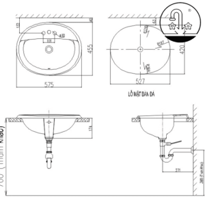 • Bản vẽ kỹ thuật của lavabo INAX AL-2395V