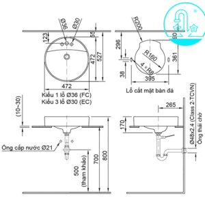 - Cắt theo đường vễ sẵn của loại chậu sẽ lắp.