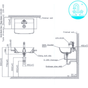 Bản vẽ kỹ thuật lắp đặt của lavabo bán âm bàn AL-345V của thiết bị vê sinh INAX, tham khảo hình dưới đây để hiểu rõ hơn nhé!