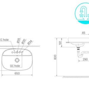 - Cùng với đó lòng chậu sâu chống bắn tóe nước, đế vòi phẳng tiện dụng và nút chặn xả bằng sứ mang đến sự sang trọng đồng bộ.