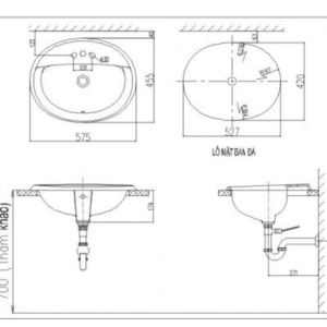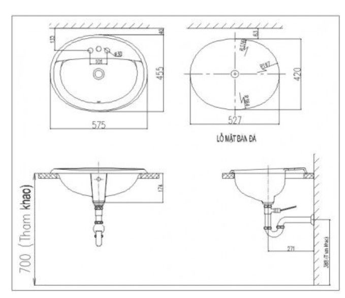Sau đây là bản vẽ kỹ thuật của chậu rửa lavabo âm bàn L2395V giúp bạn dễ dàng lắp đặt ngay tại nhà