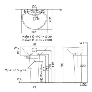 - Mẫu bồn rửa này có thể được treo tường cho các không gian nhà tắm vừa phải giúp tiết kiệm diện tích. Ngoài ra, kết hợp lavabo 288V với chân chậu L-288VD dài tạo sự chắc chắn.