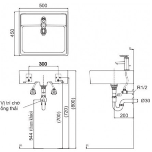 Bạn nên xem bản vẽ kỹ thuật của mẫu bồn rửa mặt INAX này hình dưới đây, trước khi lắp đặt nhé