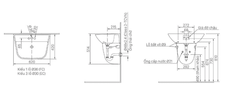 - Cuối cùng, chậu rửa lavabo treo tường L-297V có kích thước phù hợp với nhiều không gian phòng tắm khác nhau, từ nhỏ hẹp đến lớn. Sản phẩm cung cấp hai loại chậu để người dùng linh hoạt lựa chọn theo nhu cầu và sở thích cá nhân, bao gồm chậu 3 lỗ gắn vòi 1 tay gạt (EC) và chậu 1 lỗ (FC).