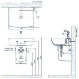 Bản vẽ Chậu Rửa Lavabo INAX L-312V/L-298VC Kèm Chân Ngắn Treo Tường