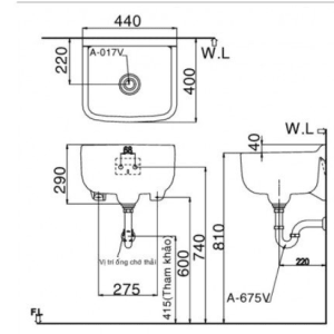 Thông Số Kỹ Thuật Của Chậu Rửa Lavabo INAX S-17V Đa Năng Treo Tường