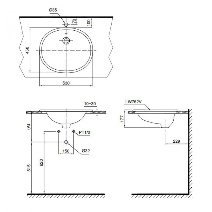 Thông số kỹ thuật chậu rửa lavabo TOTO L762#XW dương vành