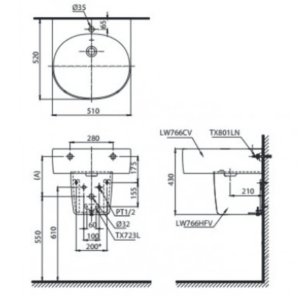 Bản vẽ bồn rửa mặt lavabo TOTO LHT766CR