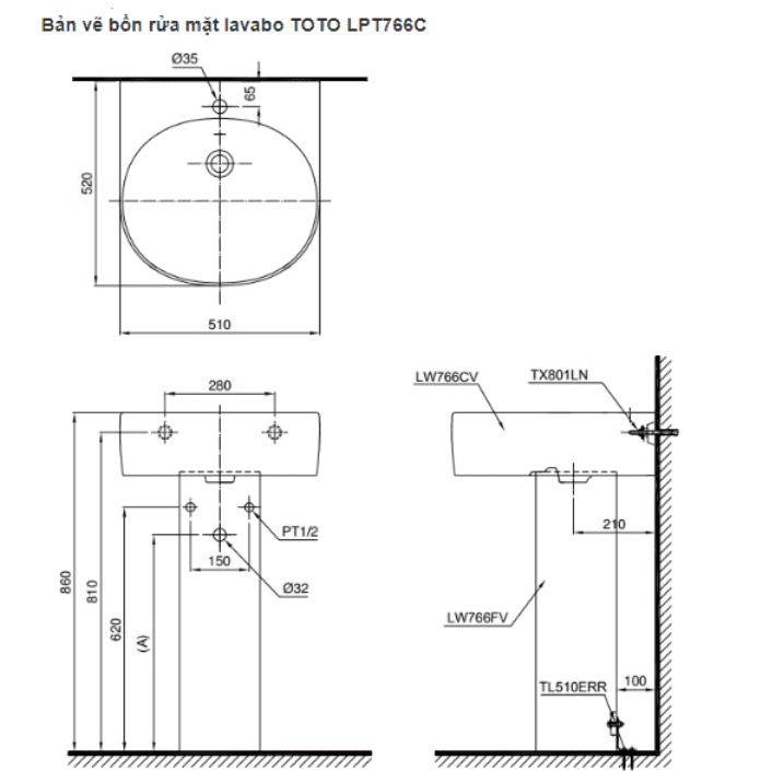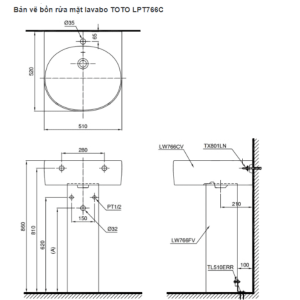 Bản vẽ bồn rửa mặt lavabo TOTO LPT766C