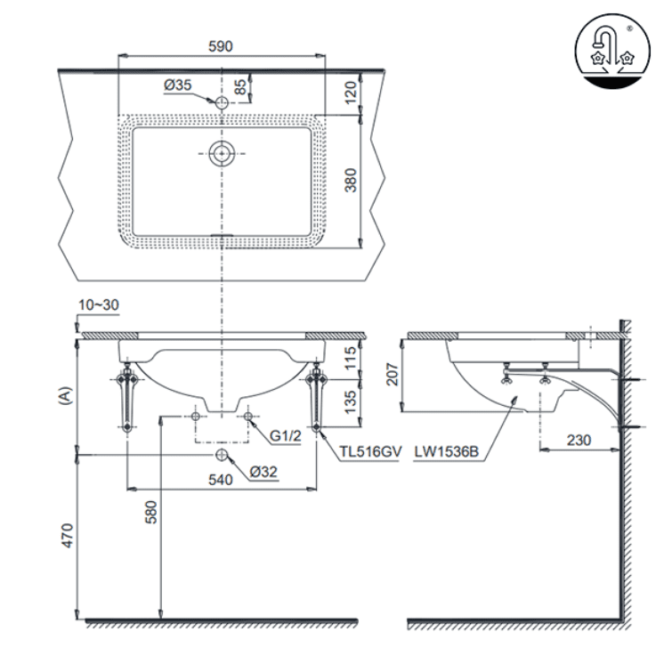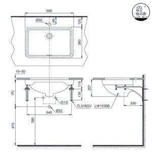 Thông Số Kỹ Thuật Của Chậu Rửa Mặt Lavabo TOTO LW1536V#XW/TL516GV Âm Bàn