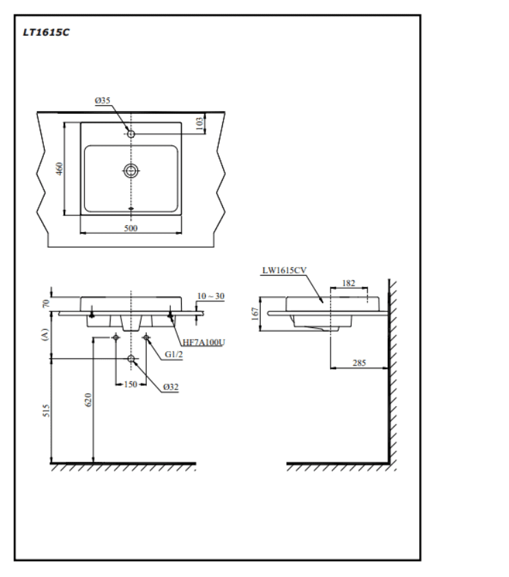 Bản vẽ Chậu Rửa Mặt TOTO LT1615C#XW Đặt Bàn