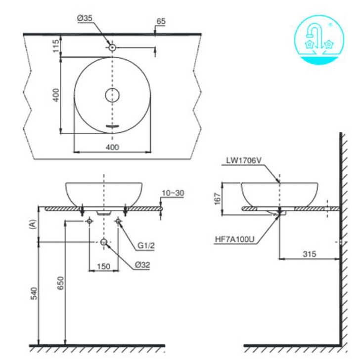 • Lỗ đặt vòi Ø35 được thiết kế theo tiêu chuẩn quốc tế, có thể kết hợp được với các mẫu vòi chậu khác như: TLP02307B, TLG01307V, TLG02307V, TLG03305V,…