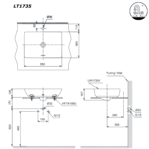 Thông tin cơ bản của chậu lavabo TOTO LT1735 đặt bàn