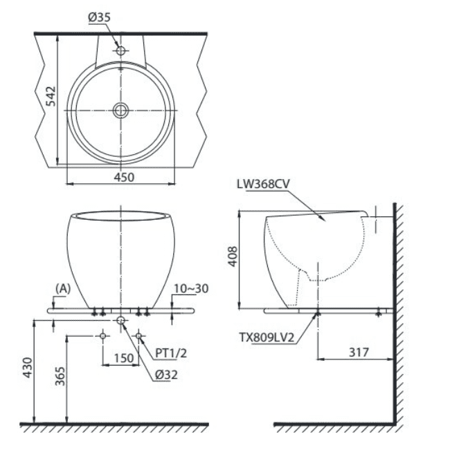 Bản vẽ Chậu Rửa Mặt TOTO Đặt Bàn LT368C#XW