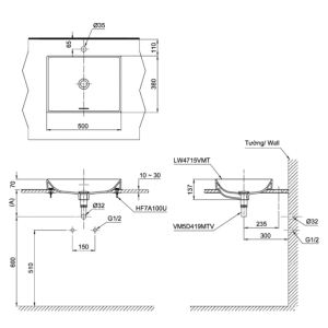 - Kích thước lỗ bắt vòi: Ø35 (mm)