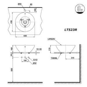 Thông tin cơ bản chậu rửa mặt đặt bàn TOTO LT523S