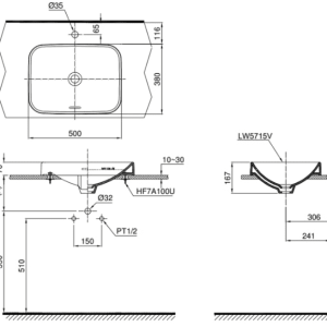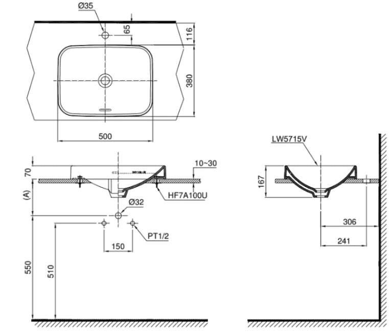 Bản vẽ chậu rửa Lavabo TOTO đặt bàn