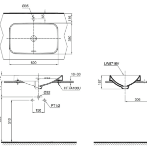 Thông tin cơ bản lavabo đặt bàn TOTO LT5716