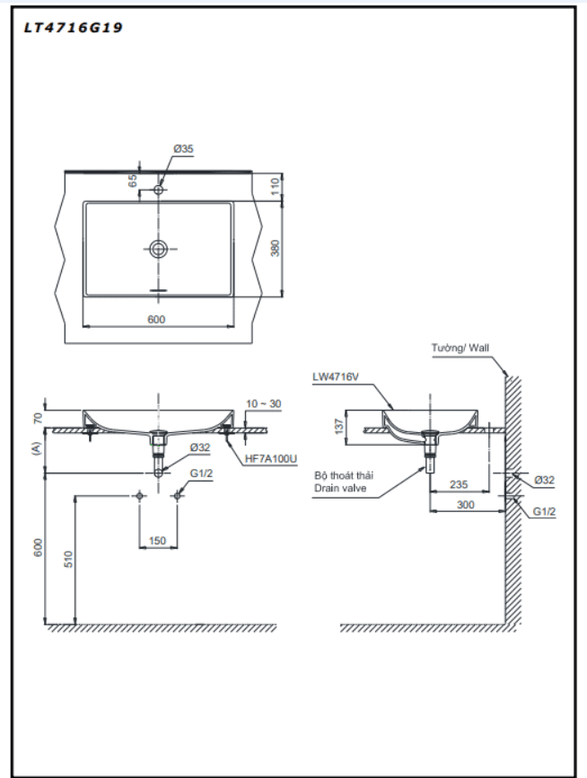 • Đường kính lỗ bắt vòi: Ø35 (mm)