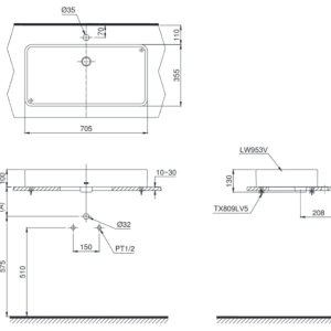 Bản vẽ Chậu Lavabo TOTO LT953 Đặt Bàn