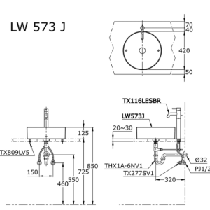 Bản vẽ kỹ thuật chậu Lavabo TOTO LW573JW/F đặt bàn