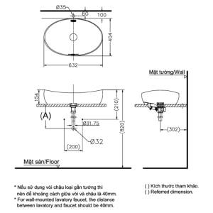 - Kích thước lỗ bắt vòi: Ø35 (mm)