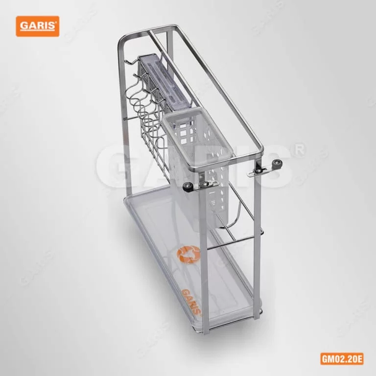 Thông số kỹ thuật Giá Dao Thớt Chai Lọ GARIS GM02.20E Inox Xước Mờ Nan Vuông Cánh Kéo 200mm