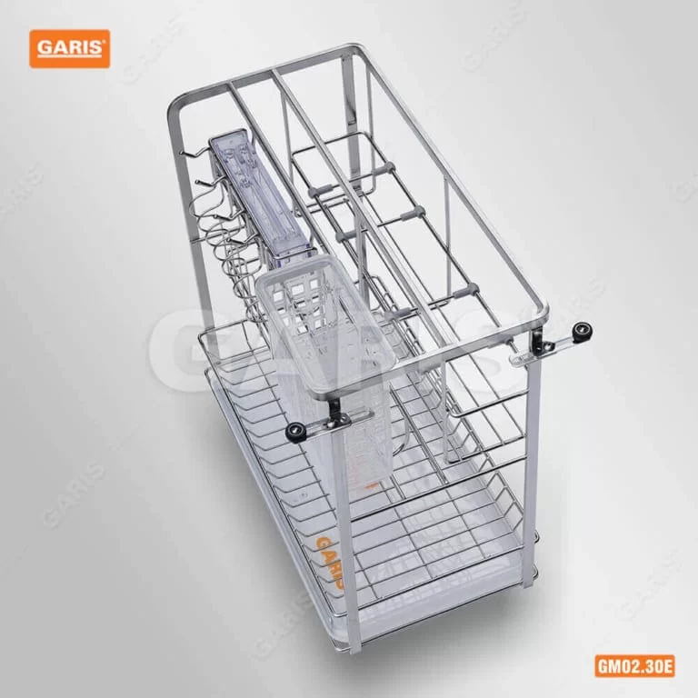 Thông số kỹ thuật Giá Dao Thớt Chai Lọ GARIS GM02.30E Inox Xước Mờ Nan Vuông Cánh Kéo 300mm