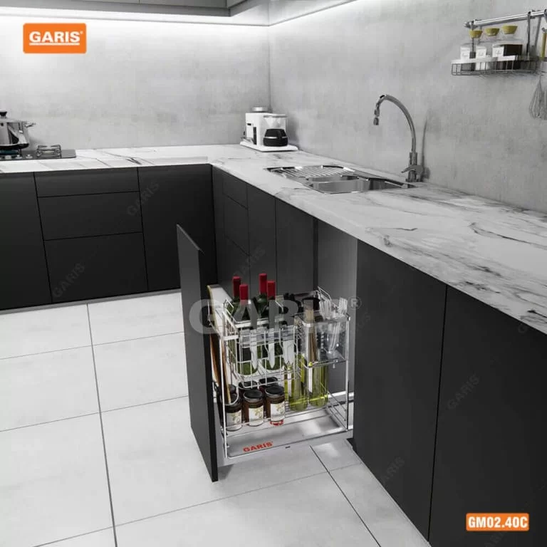 - Tối Ưu Không Gian: Cất giữ dao thớt, chai lọ gọn gàng, tiết kiệm diện tích tủ bếp.