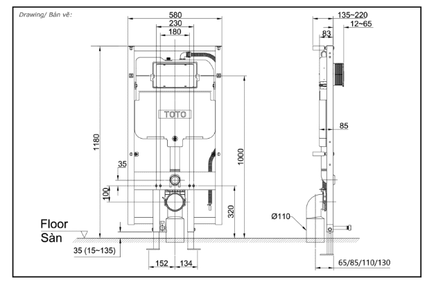Bản vẽ Két Nước TOTO Âm Tường WH172AAT