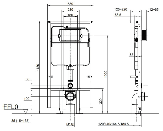 - Bao gồm két nước & khung âm tường kèm ống thải cong