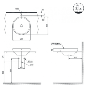 Bản vẽ kích thước chậu Lavabo TOTO LW526NJU