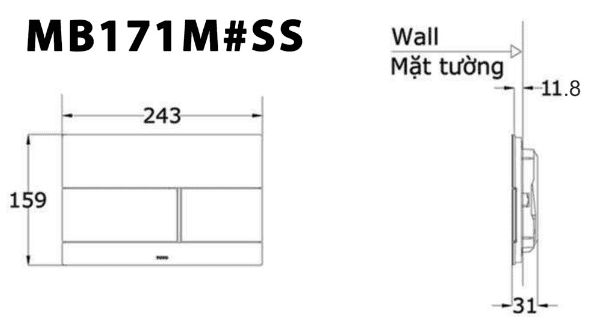 Thông số cơ bản của Mặt nạ nút nhấn bồn cầu TOTO MB171M#SS