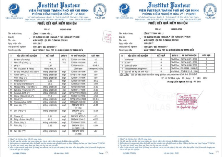 Nói không bằng thể hiện rằng Máy lọc nước Cleansui đã được kiểm định nước đầu ra đạt tiêu chuẩn tại Việt Nam ở Viện Pasteur.