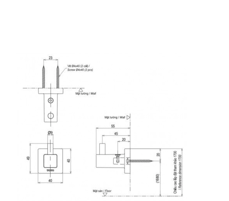 Thông Số Kỹ Thuật Móc Áo TOTO YRH408V