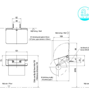 - Phần giá đỡ cố định móc treo vào tường, nắp đậy bảo vệ phía ngoài cuộn giấy luôn được khố ráo và sạch sẽ.
