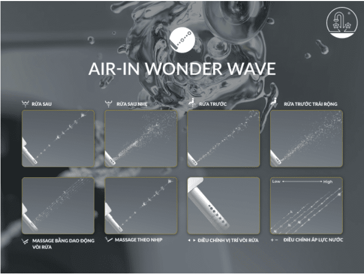 - Chế độ rửa trước và sau kết hợp massage bằng tia nước nhẹ, cho phép điều chỉnh chính xác vị trí vòi để phù hợp với từng người, hỗ trợ vệ sinh nhẹ nhàng và thoải mái hơn.