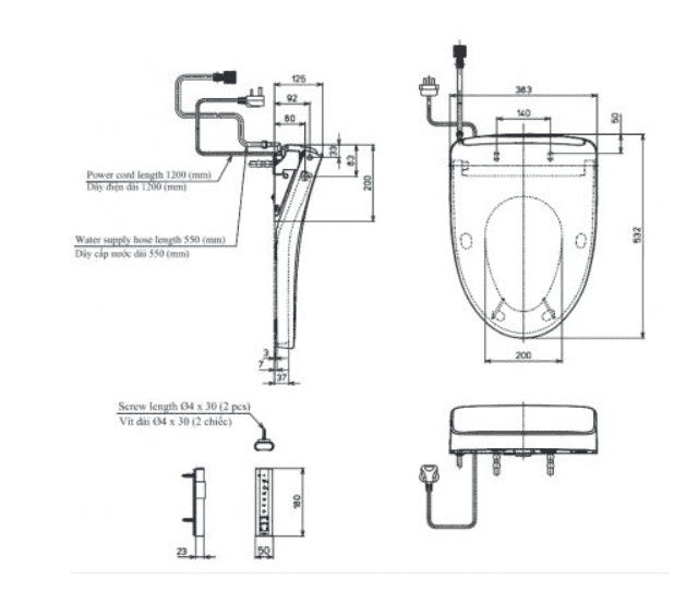 Bản vẽ kỹ thuật Nắp Rửa Điện Tử Washlet TOTO TCF4911Z#NW1