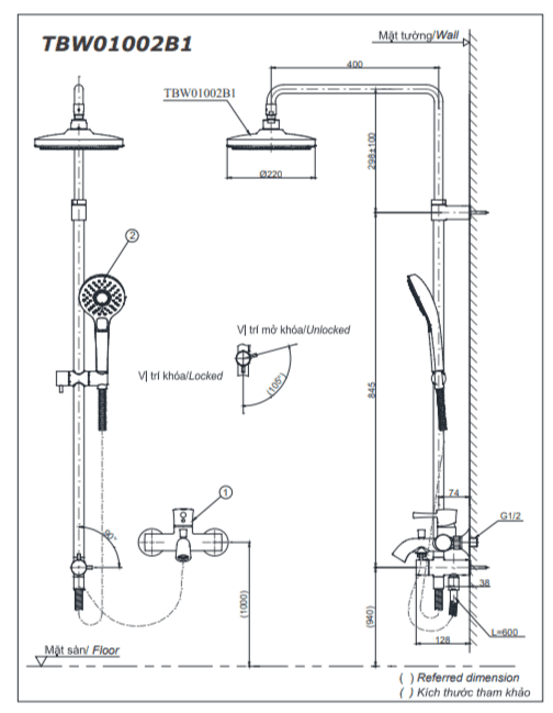 Thông số Sen Cây TOTO TBW01002BA/TBG01302VA/TBW01010A Nóng Lạnh