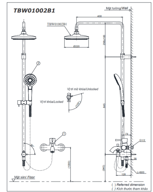 Thông số Sen Cây TOTO TBW01002BA/TBG03302VA/TBW01010A Nóng Lạnh