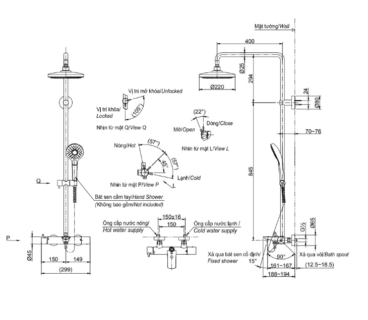 - Gồm vòi xả bồn, không bao gồm van và bát sen cầm tay