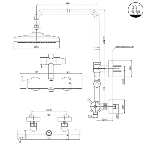 - Áp lực nước: 0.15MPa ~ 0.75MPa