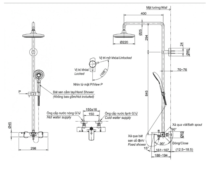 - Thiết kế bát sen tròn kích thước rộng 220mm và nước phun êm mạnh, mang lại cảm giác khoan khoái và bao trùm khắp cơ thể khi tắm. Kết hợp với công nghệ Arial-shower giúp tiết kiệm nước tối ưu.