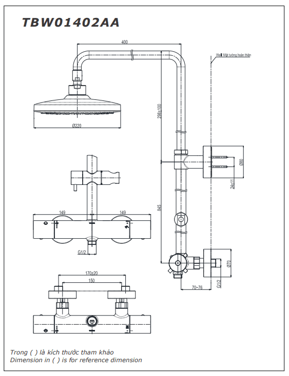 Bản vẽ của Sen Cây TOTO TBW01402AA Nhiệt Độ